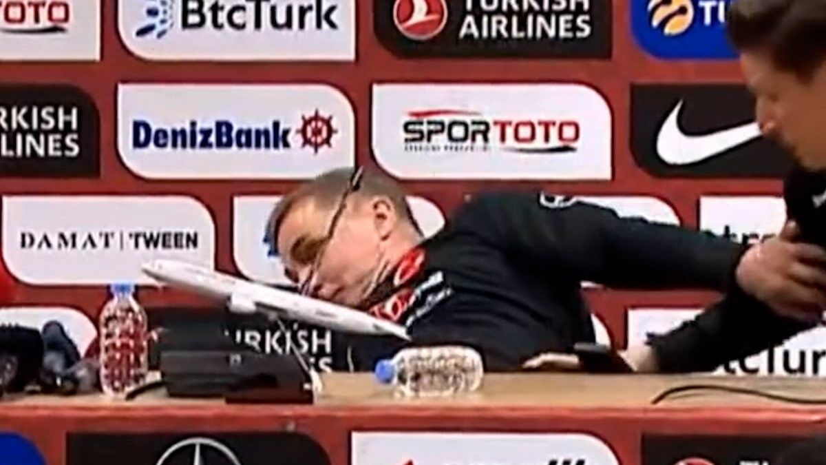 Kuntz, toplantı esnasında sandalyeden düştü. Alman teknik adam, düşüşün ardından türkçe küfürde bulundu.