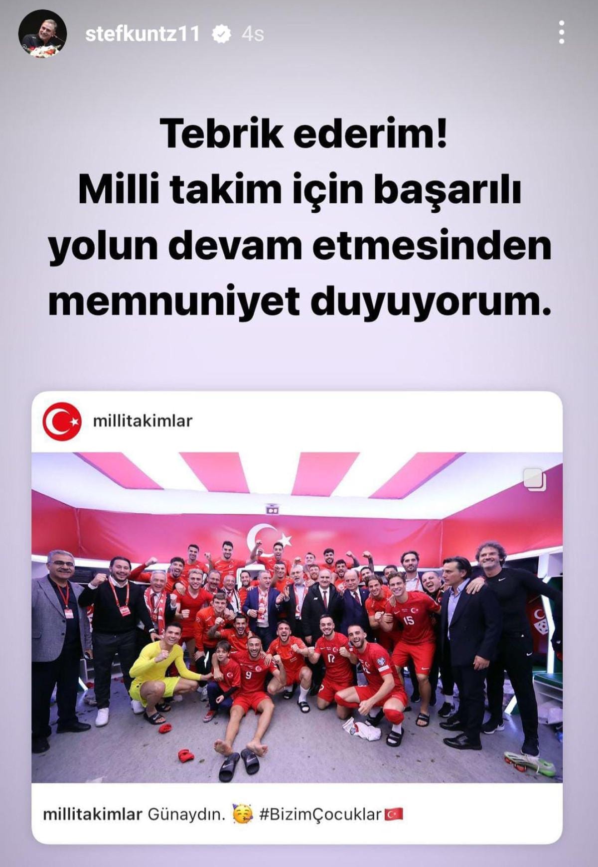 Kuntz, sosyal medya hesabından yaptığı paylaşımda, "Tebrik ederim! Milli takım için başarılı yolun devam etmesinden memnuniyet duyuyorum." ifadelerini kullandı.