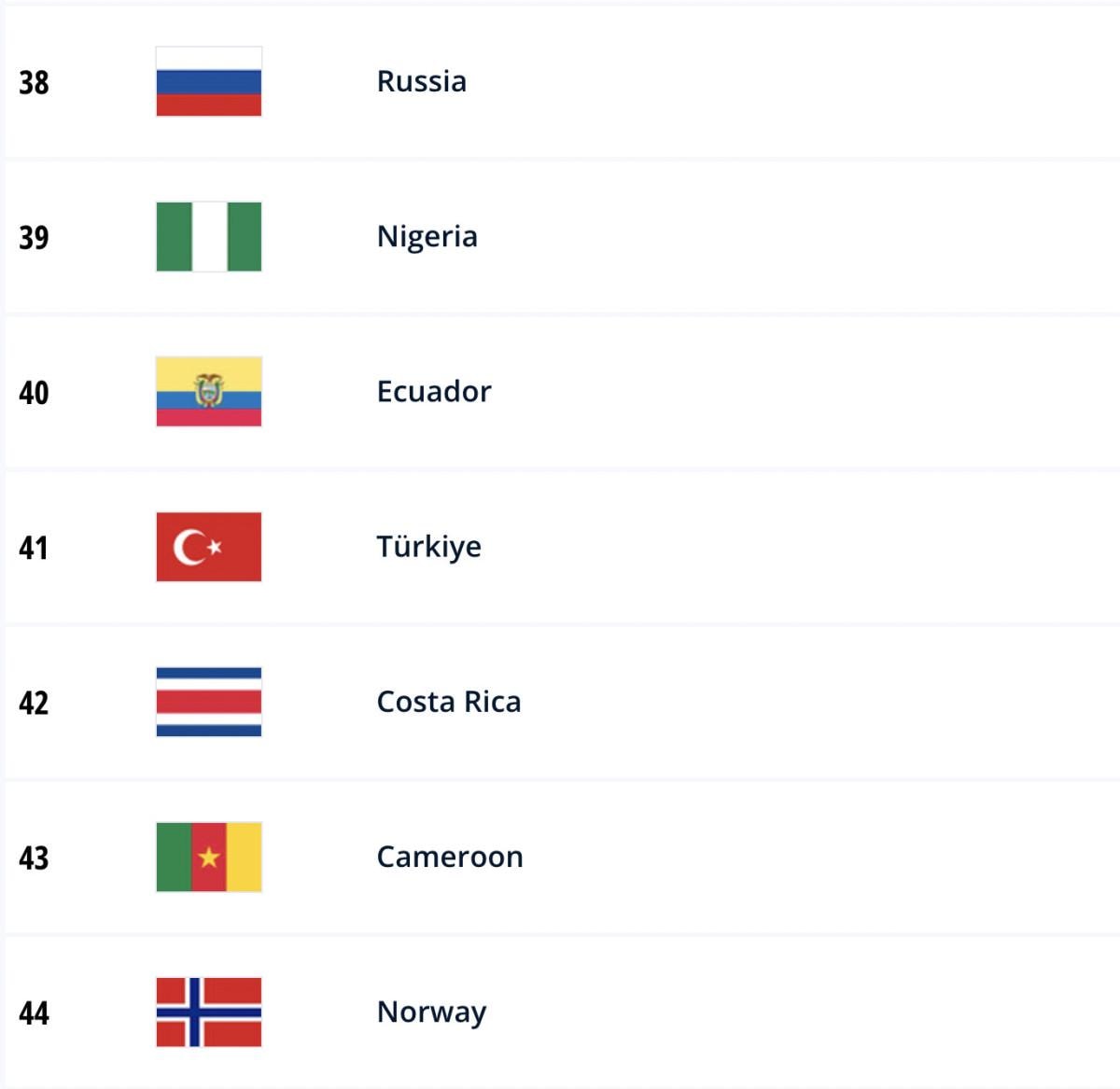 2022 FIFA Dünya Kupası şampiyonu Arjantin, bin 843,73 puanla zirvedeki yerini korurken, son Dünya Kupası finalisti Fransa bin 843,54 puanla 2. sırada, bin 828 puanlı Brezilya ise 3. basamakta yer aldı. Puanını bin 797 yapan İngiltere, 4. sıraya yükselirken, bin 788 puanlı Belçika, 5. sıraya geriledi.