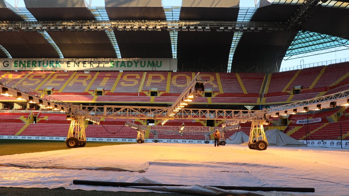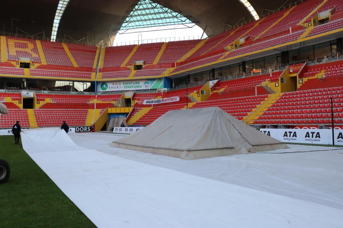Zeminde bakımları artırdık. Gübrelemelerimizi daha yoğun yapmaya başladık. TFF’nin çim uzmanları da bize burada destek verdiler. Beraber daha hızlı bir şekilde güzel olacak şekilde bakım programı hazırladık. Soğuk bölge, özellikle güney tarafı biraz daha gölgede olduğu için orada sahaya koruyucu örtüler örtüp, ışıklandırmalar yaptık. Şu anda sahamız ölçümlerimizi yaptığımızda kök bölgemiz ve çim durumumuz iyi. Zemin olarak maça hazırız diyebiliriz.