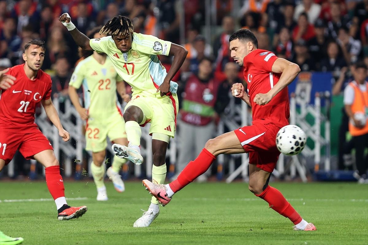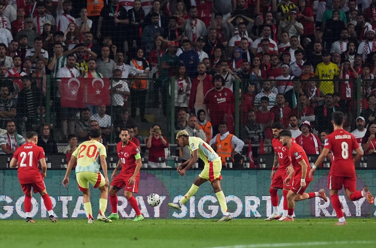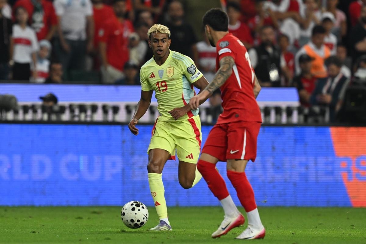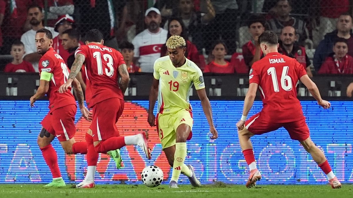 31' İspanya savunmamızı yine eksik yakaladı. Lamine Yamal, topu ceza sahamıza kadar taşıdı fakat şutunda isabeti bulamadı.
