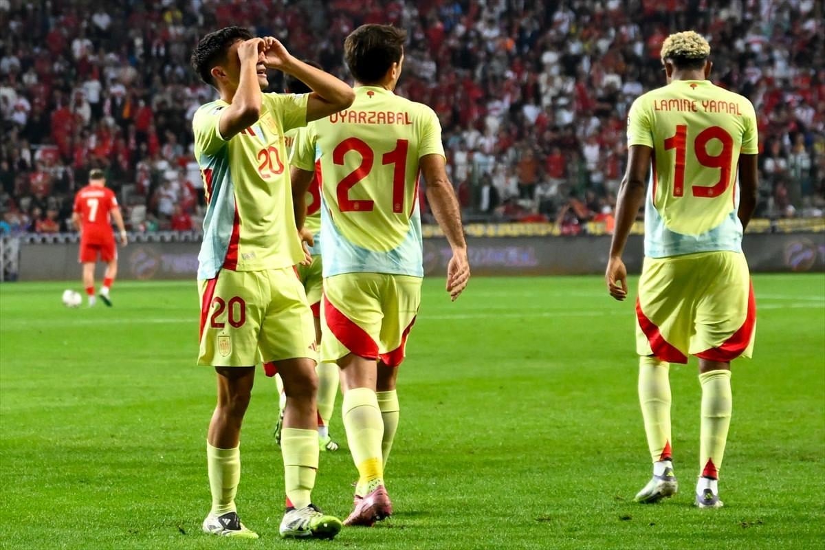 73' İspanya'da oyuncu değişikliği. Lamine Yamal ve Zubimendi oyundan çıkarken, oyuna Morata ve Rodri girdi.