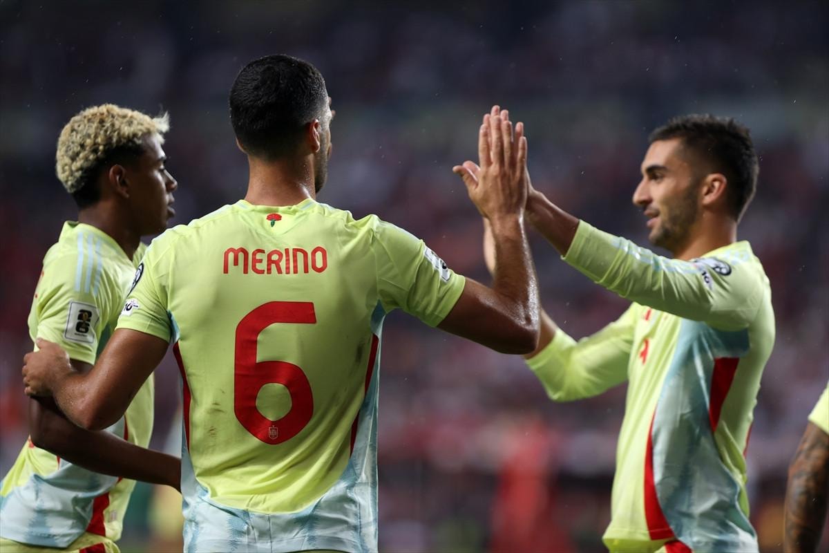 22. ve 45+1. dakikalarda Mikel Merino'nun attığı gollerle fark üçe çıktı ve ilk yarı 3-0 İspanya üstünlüğüyle tamamlandı.