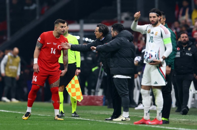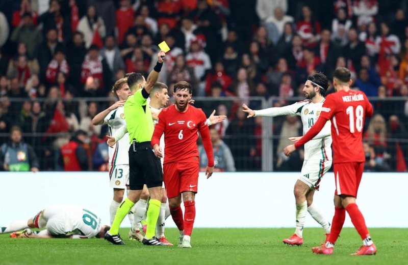 76' Orta alanda Hakan'ın Dominik Szoboszlai'ye yaptığı müdahale faul. Macaristan serbest vuruş kullanacak.