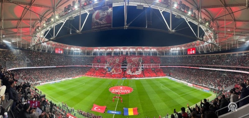 Türkiye - Romanya maçı öncesinde tribünleri dolduran futbolseverler, görkemli bir koreografiye imza attı.