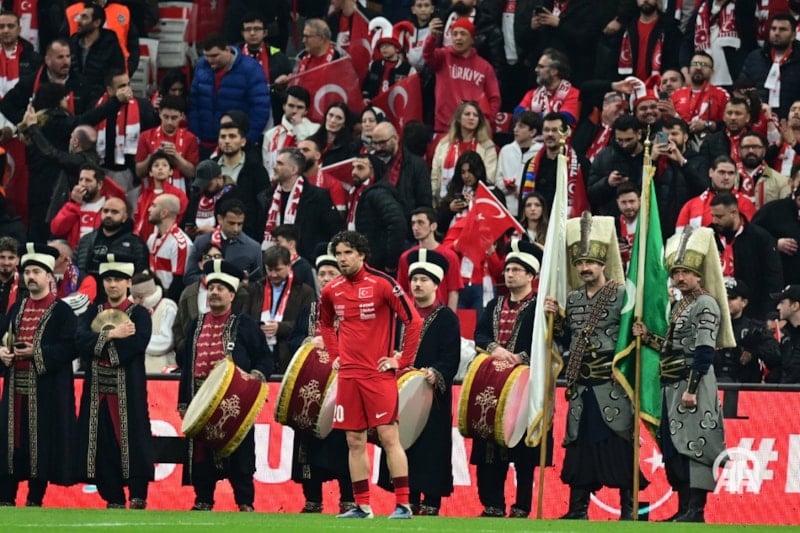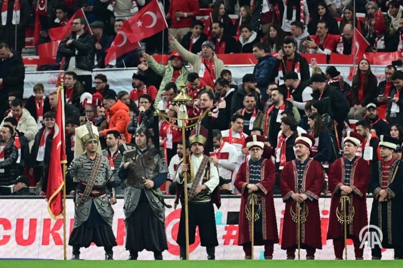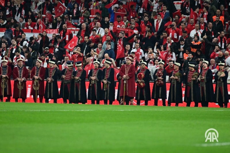 Müsabaka öncesinde Mehteran Takımı, Mehter Marşı çalarak futbolculara destek verirken, taraftarları da coşturdu.