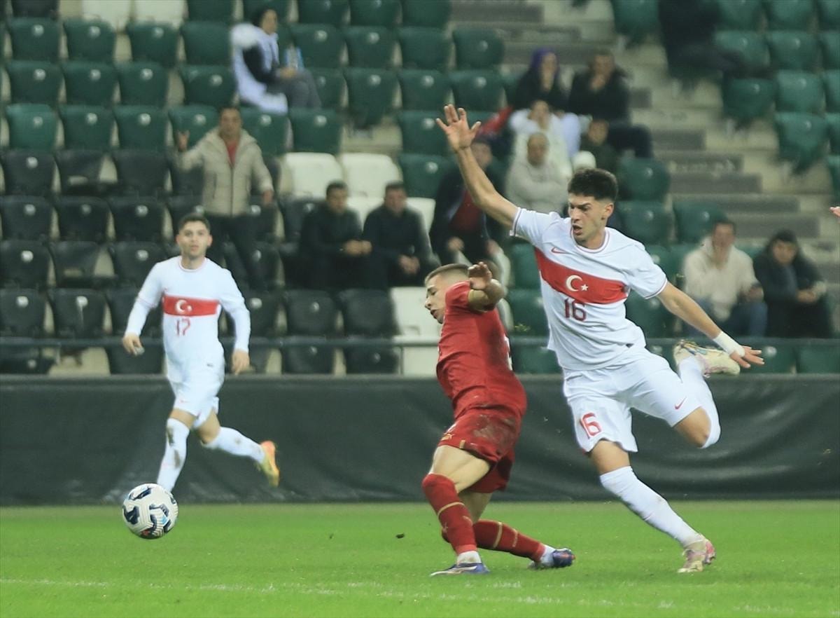 Milli takım, Kocaeli Stadyumu'nda oynanan müsabakaya Jankat Yılmaz, Baran Moğultay, Emir Ortakaya, Hamza Güreler, Ege Bilsel, Yunus Emre Konak, Demir Ege Tıknaz, Baran Ali Gezek, Emirhan Demircan, Burak İnce ve Mustafa Erhan Hekimoğlu 11'iyle çıktı.