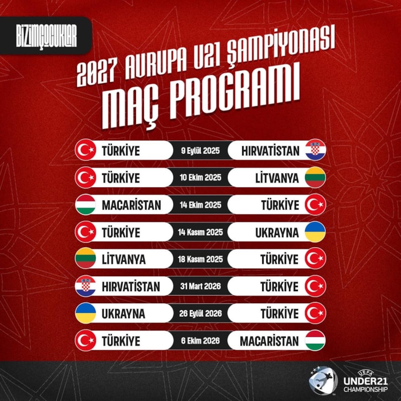 Türkiye Futbol Federasyonu'nun açıklamasına göre genç millilerin, H Grubu'nda oynayacağı müsabakalar 9 Eylül'de başlayacak ve 6 Ekim 2026'da tamamlanacak.
