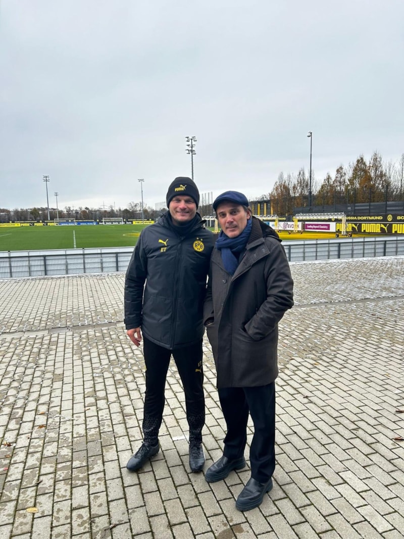 İtalyan teknik adam, burada Borussia Dortmund Teknik Direktörü Edin Terzic ile bir süre görüştü.