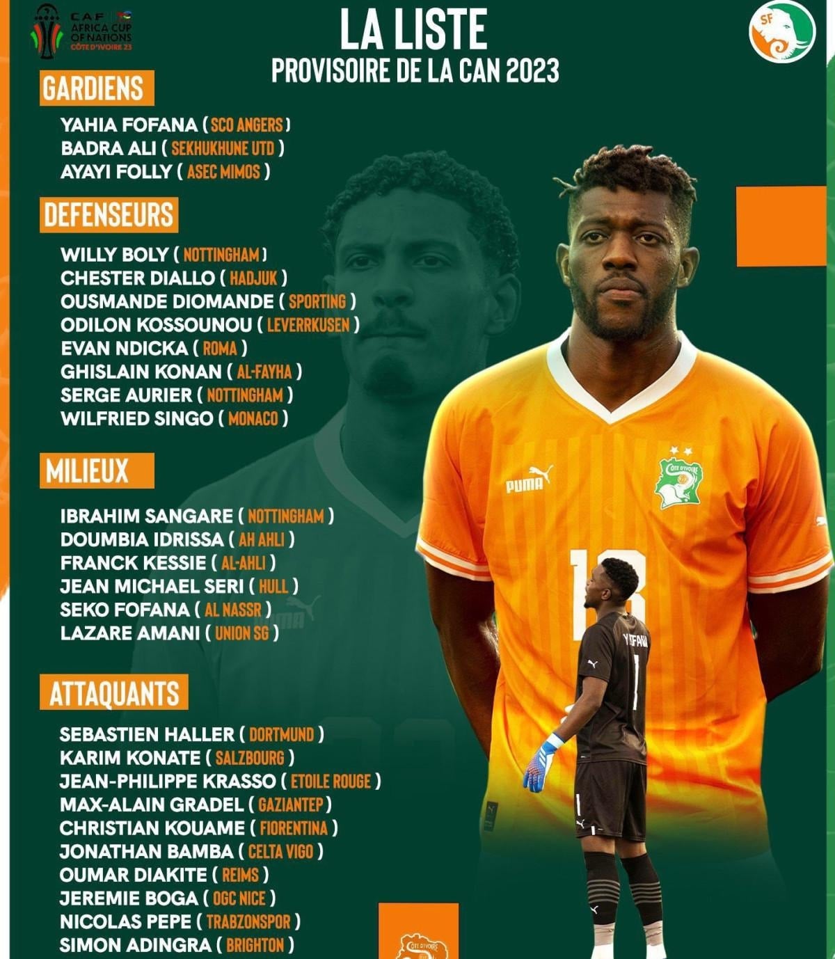 Fildişi Sahili Milli Takımı, ocak ayında başlayacak Afrika Uluslar Kupası için aday kadrosunu belirledi.