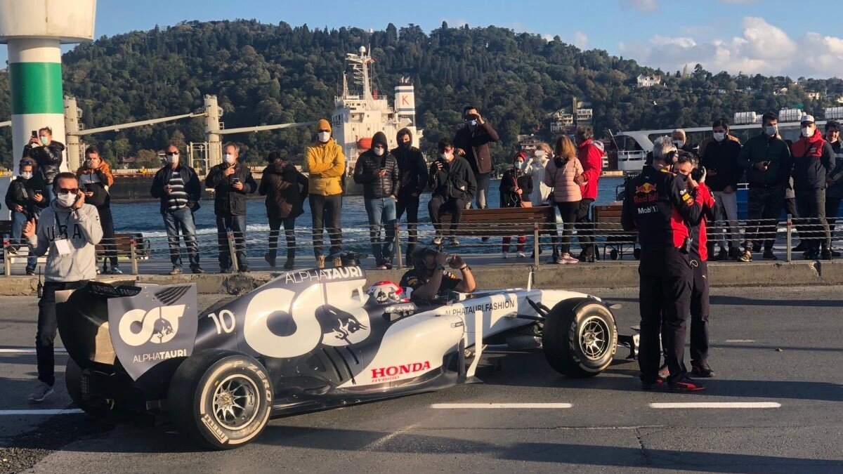 Arnavutköy'de çekim yapan F1 takımı Alpha Tauri'nin aracı ise yolda kaldı. Vatandaşlar ise şaşkın gözlerle bu anları izledi.