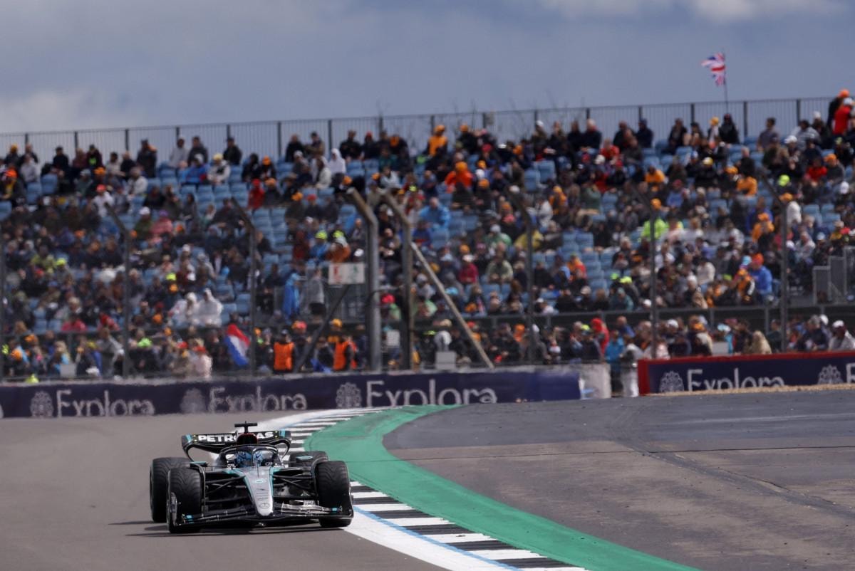 Mercedes'in Büyük Britanyalı pilotu George Russell, İngiltere'nin Northamptonshire bölgesindeki 5,9 kilometrelik Silverstone Pisti'nde düzenlenen sıralama turlarında, 1 dakika 25.819 saniyelik derecesiyle ilk cebin sahibi oldu.