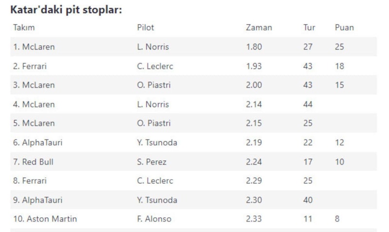 F1 takımı McLaren, Katar GP’de Norris’e yaptığı 1.80 saniyelik pit stop ile birlikte Red Bull’a ait olan 1.82 saniyelik rekoru kırdı!