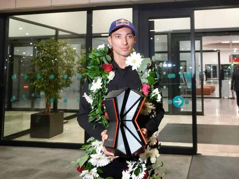 Toprak Razgatlıoğlu, gelecek sezon MotoGP'de yarışacağının hatırlatılması üzerine, "Her zaman en büyük hayalim bir gün dünya şampiyonu olmaktı. Sadece 1 şampiyonluk hayali kurmuştum ama Allah 3 kez nasip etti. Bunun için çok mutluyum. MotoGP'ye dünya şampiyonu olarak geçmek çok önemliydi. MotoGP'ye daha güçlü ve motive bir şekilde gidiyorum. Gelecek sene bizim için daha zorlu olacak. Şu anki yarıştığımdan farklı bir motosiklete bineceğim. Buna alışma sürecim olacak. Zorlu bir süreç bizi bekliyor. Sizlerin desteğiyle bu zorlukları aşacağımızı düşünüyorum. Bizim için ilk sene çok önemli ama en büyük hedefim 2027. Her şeyin daha farklı olacağını düşünüyorum. İnşallah orada da başarı elde ederim. MotoGP'ye gitmek ayrı bir şey ama orada başarı en büyük hedefim." değerlendirmesinde bulundu.