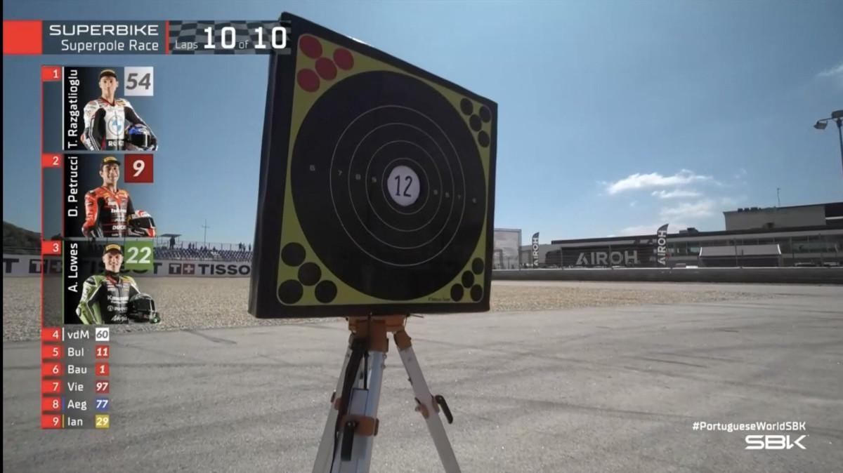 Şampiyona tarihine geçen ve zafer kutlamasını milli atıcı Yusuf Dikeç'in Paris 2024 Olimpiyat Oyunları'nda gümüş madalya kazandığı atış tarzıyla yapan Toprak Razgatlıoğlu, piste getirilen hedef tahtasını "12"den vurdu.