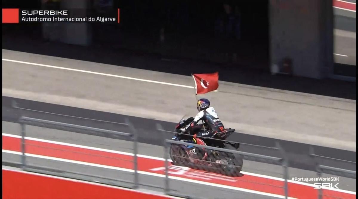 Portimao kentindeki 4,6 kilometrelik Uluslararası Algarve Pisti'nde Superpole yarışında 10 tur sonunda Rokit BMW takımı pilotu Toprak Razgatlıoğlu, damalı bayrağı yine ilk sırada geçti.