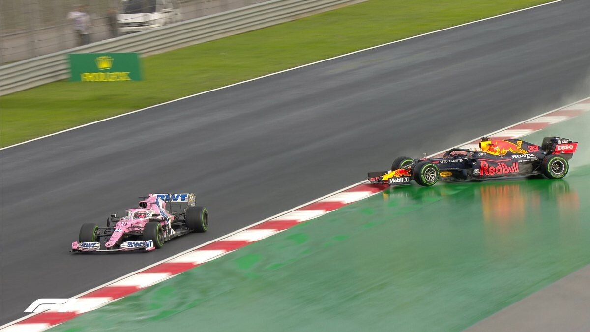 Hollandalı pilot, rakibini sollamak isterken bir anda kontrolü kaybederek spin attı. Formula 1 takipçilerine soğuk terler döktüren anlarda Verstappen aracı iyi bir şekilde toparladı. Yaptığı bu tehlikeli hareket sonucunda Hollandalı pilot 6. sıraya geriledi.
