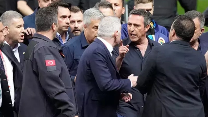 Fenerbahçe’nin 1-0 kazandığı kritik derbinin ardından da olaylar yaşandı. Saha içindeki kavgada Başkan Ali Koç ve statta bulunan Fenerbahçeli yöneticilerin tamamı zeminde bulunurken, Galatasaray Genel Sekreteri Eray Yazgan, stat müdürü ve yetkililer ile Başkan Dursun Özbek’in şoförünün darbe aldığı görüldü.