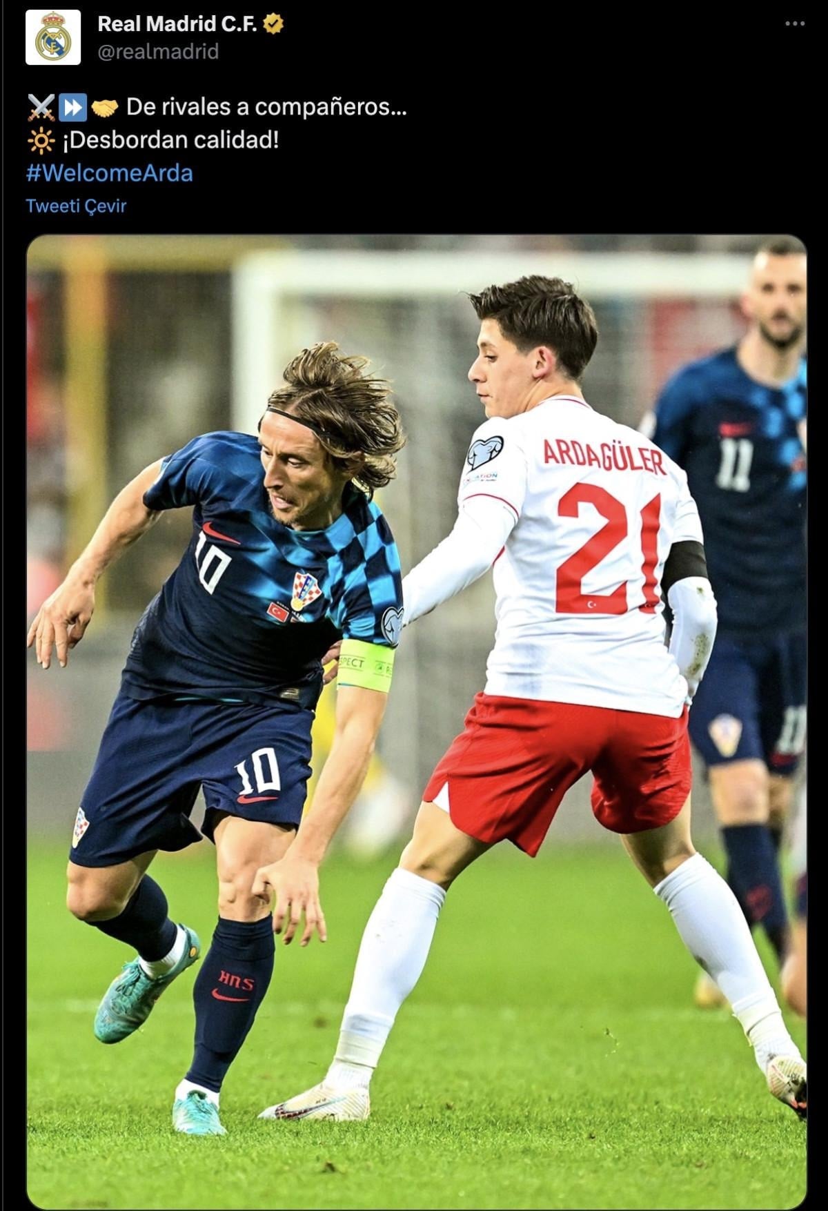 Son olarak İspanyol devi efsanevi oyuncusu Luka Modric ile Arda Güler'in Türkiye-Hırvatistan maçındaki top kapma mücadelesinin fotoğrafını paylaştı.