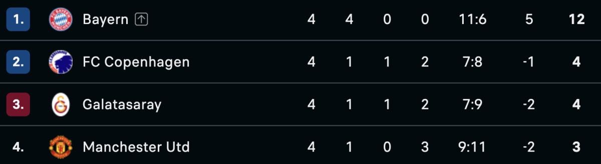 Bu galibiyetin ardından Kopenhag puanını 4'e yükseltti. Manchester United 3 puanda kaldı.