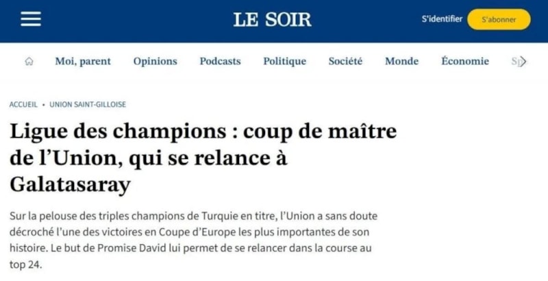 Lesoir: Union, Galatasaray'ı deplasmanda güzel bir galibiyetle geçerek yoluna devam ediyor.