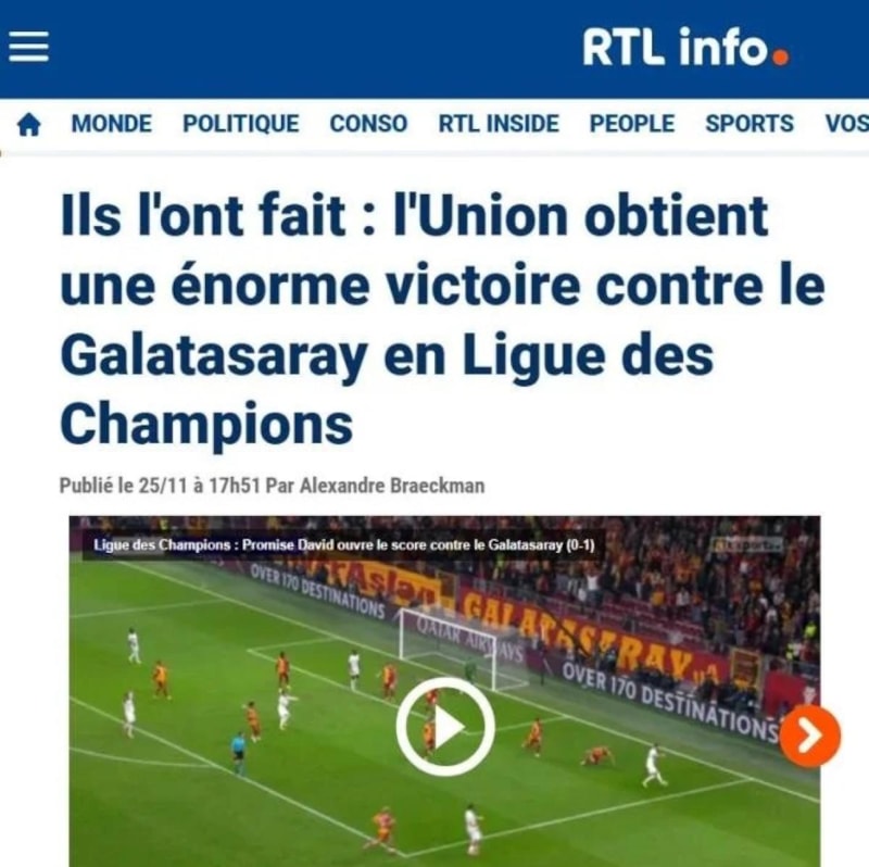 RTBF: Union SG, Galatasaray'ı devirdi ve Şampiyonlar Ligi'nde ikinci zaferini elde etti. Tüm zorluklara meydan okumak zorundaydılar ve başardılar. Union Saint-Gilloise oyuncuları Galatasaray'ı yendi. Belçika ekibine yepyeni bir canlılık getiren ikinci Şampiyonlar Ligi zaferi.
