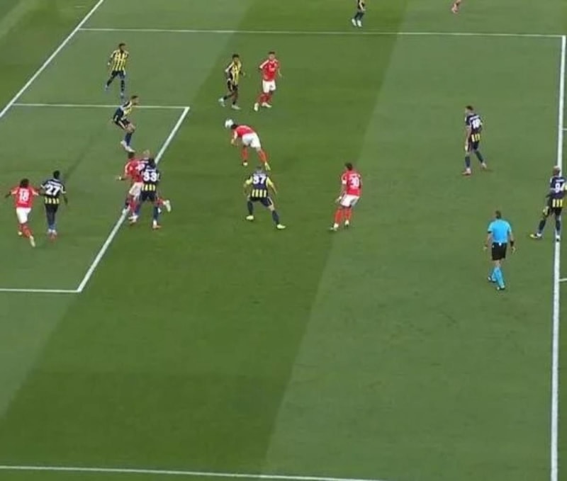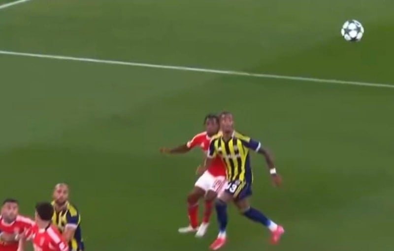 Benfica'nın korner vuruşunda Leandro Barreiro çizgide Nelson Semedo'nun dengesini bozmasına Fenerbahçe kulübesi itiraz etti.