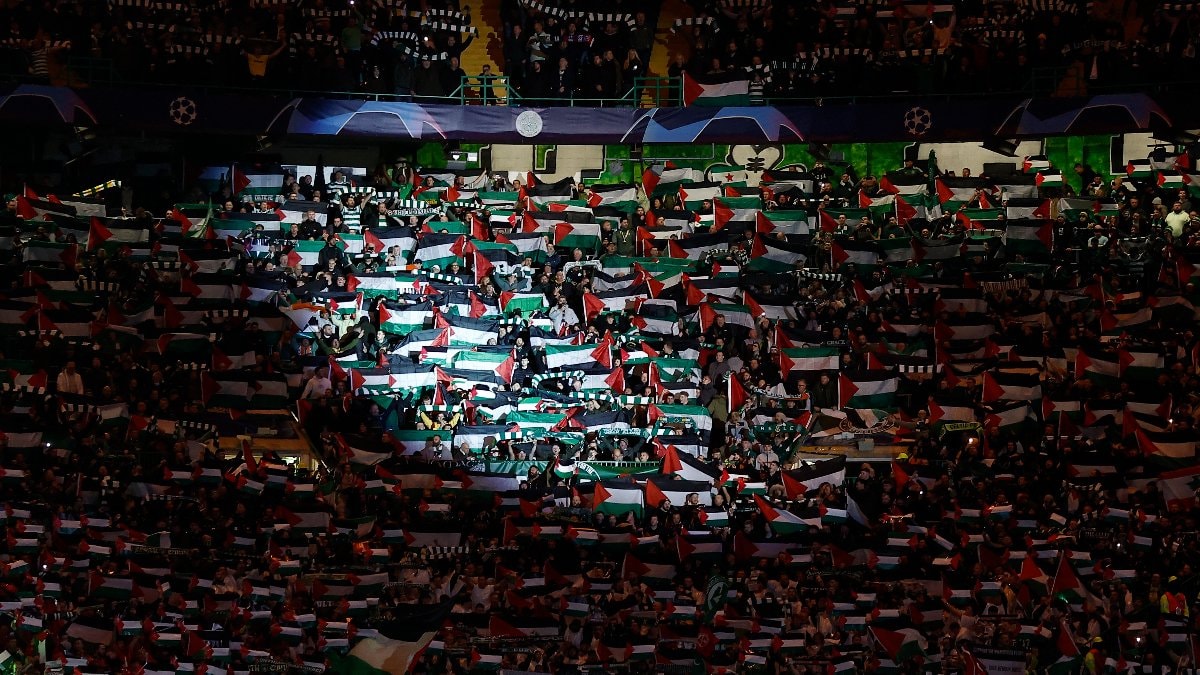 UEFA Şampiyonlar Ligi E Grubu maçında Celtic'in, Atletico Madrid takımını konuk ettiği maçta Celtic taraftarı, bayrak açarak Filistin'e destek verdi.