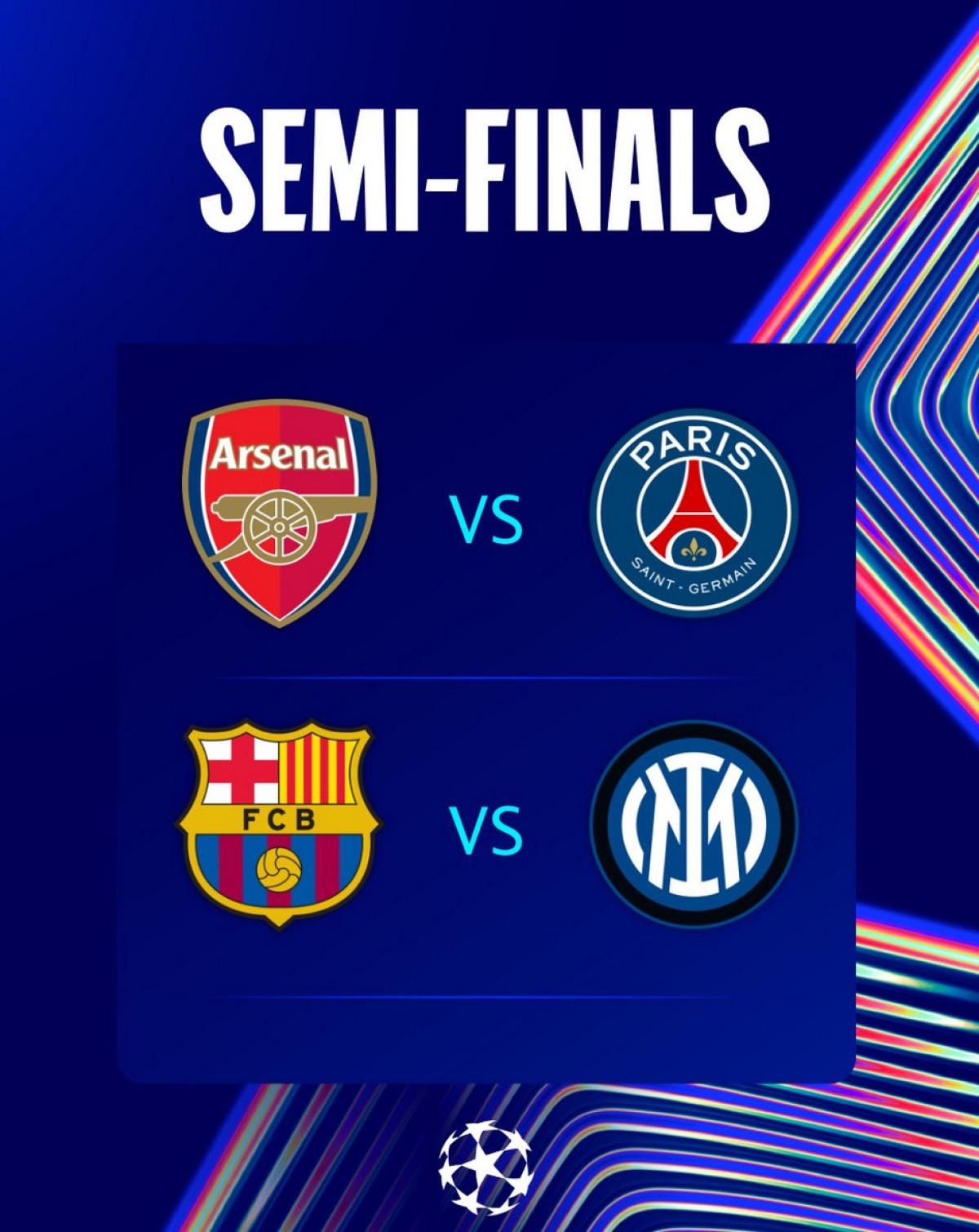 Inter, yarı finalde Barcelona'yla karşılaşacak. Arsenal ise yarı finalde Paris Saint-Germain ile oynayacak.