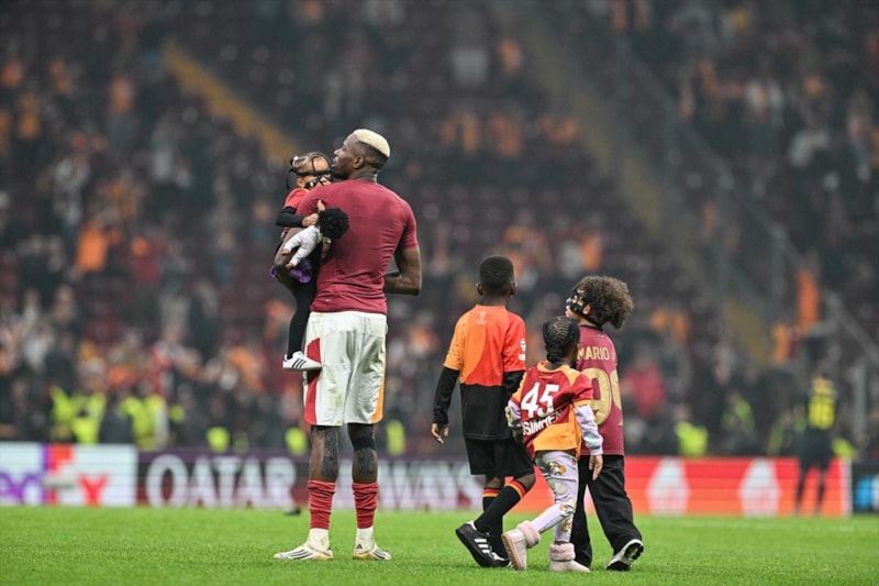 Ayrıca maçta 2 gol kaydeden Nijeryalı futbolcu Victor Osimhen ile Abdülkerim Bardakcı, kale arkasındaki taraftarların isteğini kırmadı ve üçlü çektirdi.