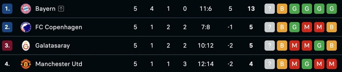 Galatasaray bu sonucun ardından puanını 5'e, Manchester United ise 4'e yükseltti.