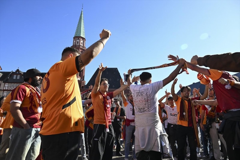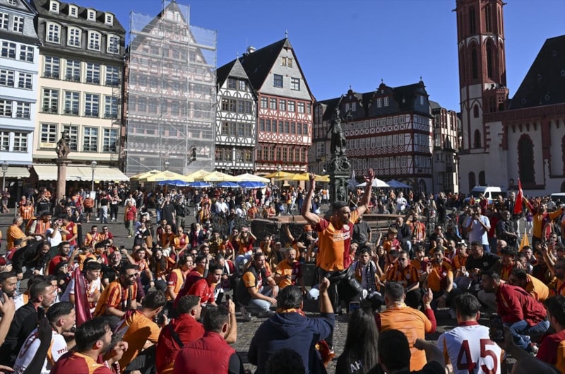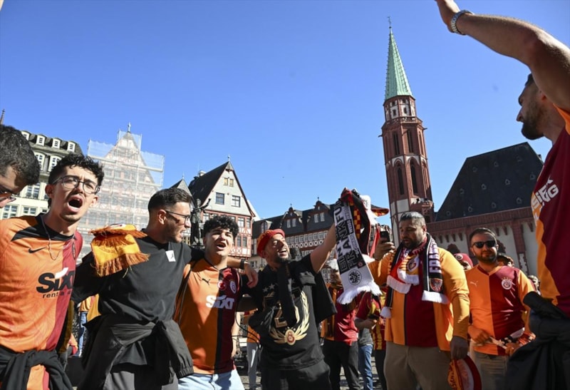 Galatasaray'ın taraftarları, maç öncesinde Römerberg Meydanı'nda bir araya geldi.