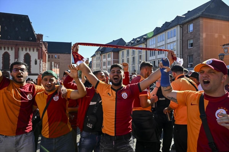 Galatasaray, UEFA Şampiyonlar Ligi'nin ilk haftasında deplasmanda Almanya'nın Eintracht Frankfurt takımıyla karşı karşıya gelirken takımlarına destek olmak için Almanya'ya gelen Galatasaraylı taraftarlar sokaklarda 'Filistin'e özgürlük' sloganları atarak yürüdü.