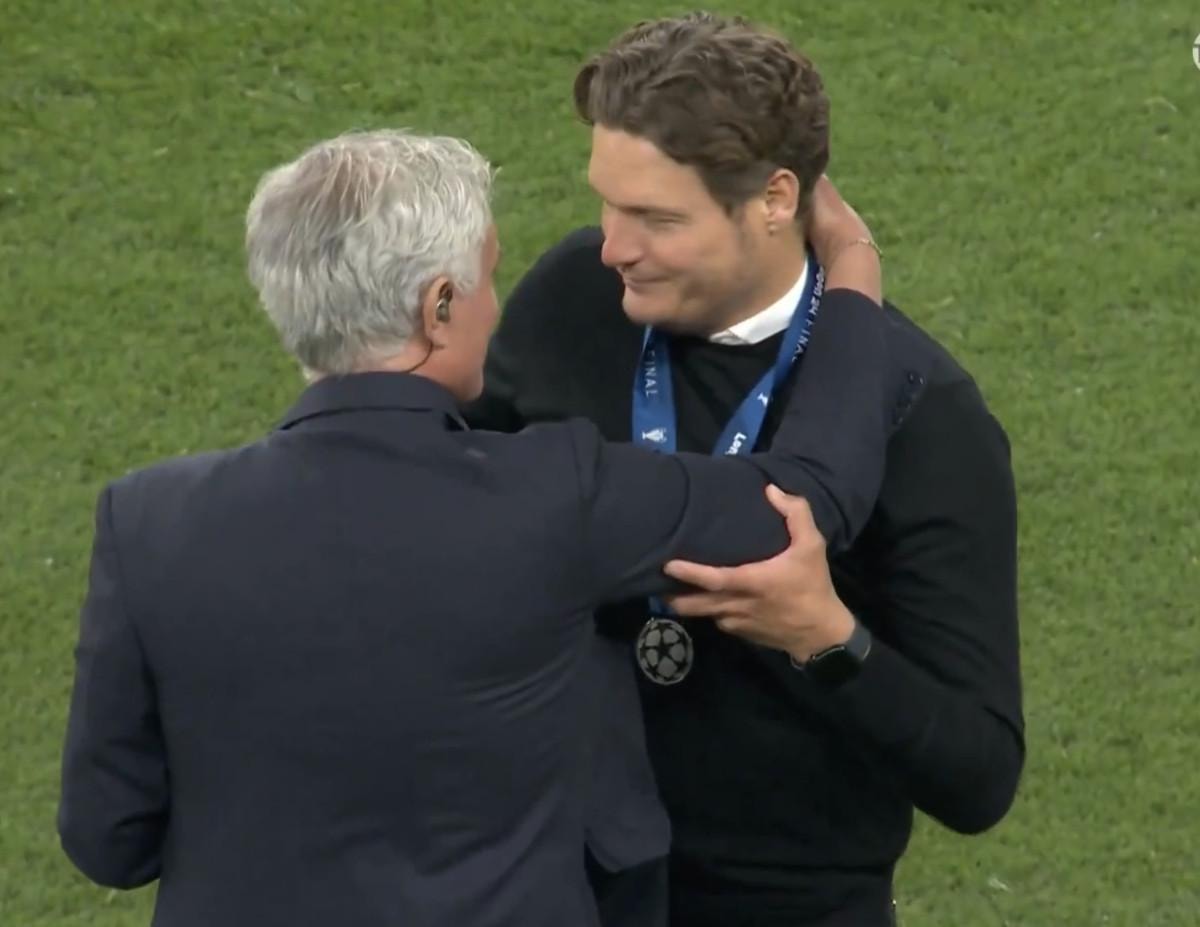Fenerbahçe'nin anlaşma sağladığı Portekizli teknik adam Jose Mourinho, karşılaşmanın ardından Borussia Dortmund'un hocası Edin Terzic'i sarılarak teselli etti.