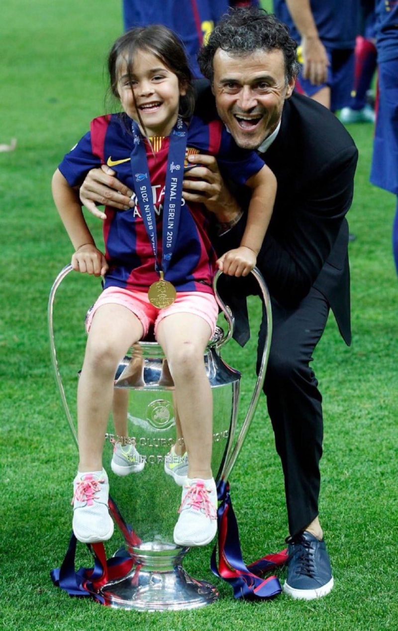 2015 yılında Barcelona'nın kazandığı Şampiyonlar Ligi şampiyonluğunun mimarı olan Luis Enrique kupa zaferini kızı Xana ile kutlamıştı.