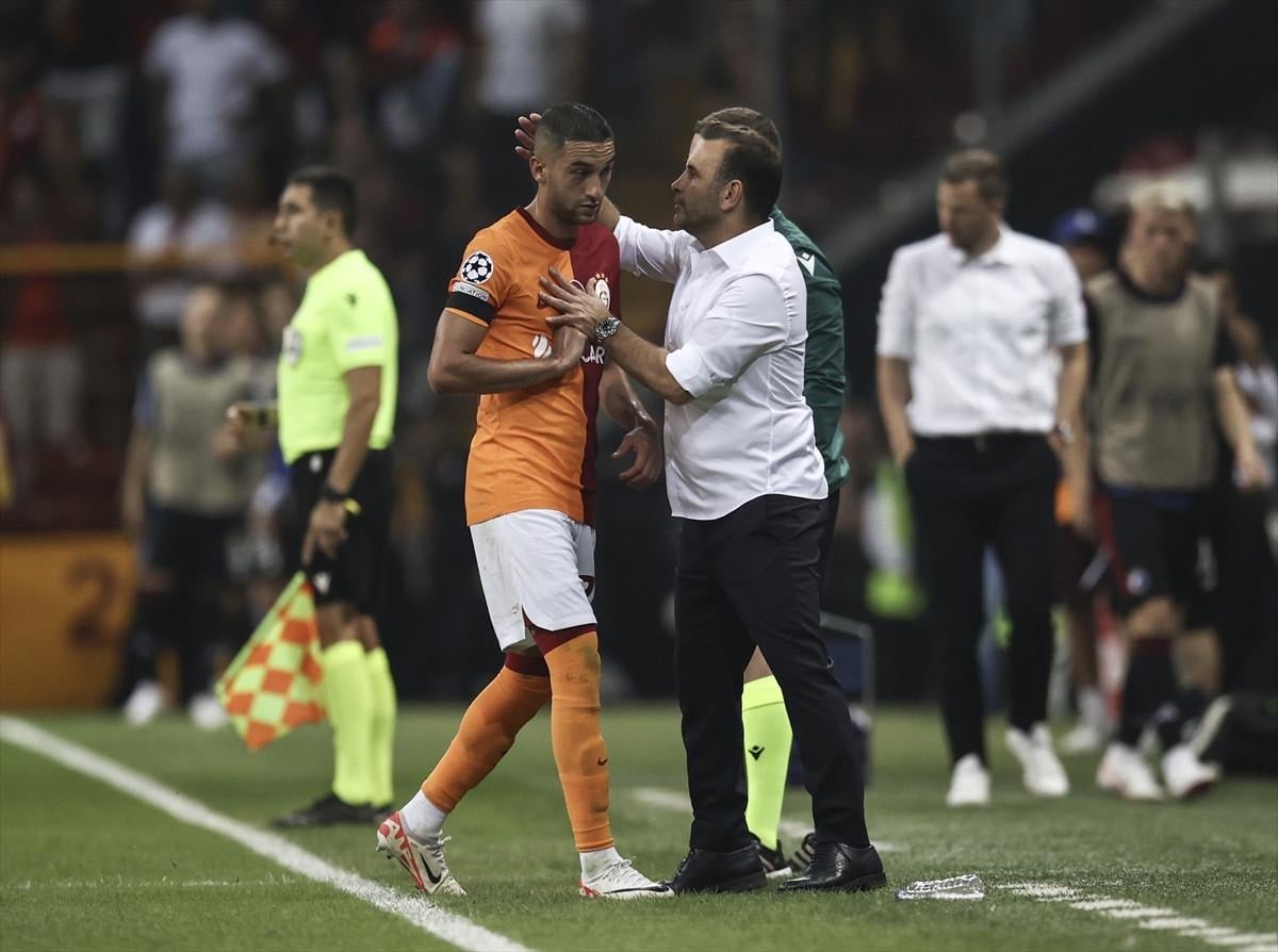 "Ön tarafta bir değişiklik yaptık, Barış’ı aldık. Bir değişiklik hakkımız kalmıştık. Son değişikliği Ndombele ile kullanmak istedim. Öne doğru top taşıyan, rakibi eksiltebilecek, öne doğru aksiyon yapabilecek bir oyuncu olarak onu düşündüm. Öndeki 4 oyuncuyu değiştirmiştim. Icardi’nin sahada kalması gerekiyordu. Gole ihtiyacımız vardı. O yüzden savunmadan birini çıkarıp, Torreira’yı stopere çektim. Maçın genelinde çok geriye pas oynadık. Rakibin 10 kişi kalmasıyla Torreira hamlesiyle oyunu daha iyi kurmak istedik. Bakambu’yu kullanmama nedenim Icardi ile devam etmemdi" ifadelerini kullandı. Ürettikleri pozisyonların Şampiyonlar Ligi’ne ve kapanan takımlara göre yeterli olduğunu söyleyen Okan Buruk, "Genel olarak pozisyonların bir çoğu netti. İkinci yarıda rakibin yaslandığı yerde zaman zaman çok fazla üretemedik. İlk yarı hem ürettik, hem pozisyona girdik. İkinci yarıdaki oyun benim de kabul edebileceğim bir oyun değil. İlk yarıdaki oyunu devam ettirmemiz gerekiyor"