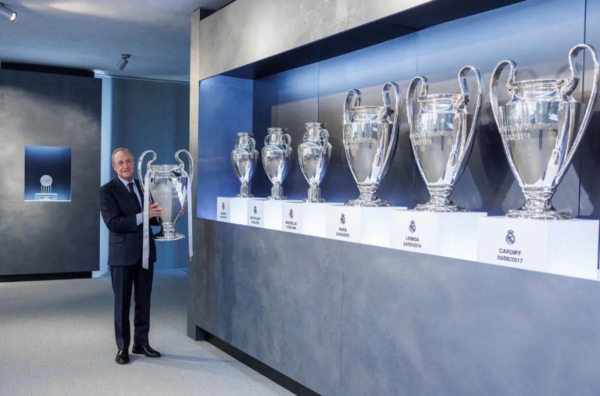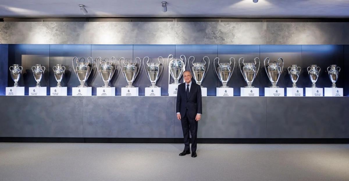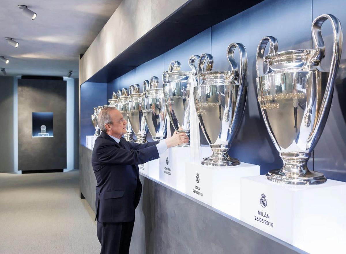 Kulüp başkanı Florentino Perez kupayı yerleştirirken, "Başkanımız kupayı kulübümüzün kazandığı diğer 14 Avrupa Futbol kupasının yanına koydu." notuyla o anlar Real Madrid'in resmi sosyal medya hesabından paylaşıldı.