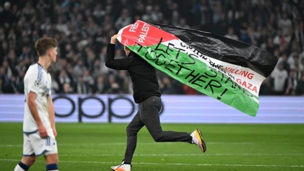 Maçın başında sahaya giren taraftarın elinde tuttuğu bayrakta, "Gazze'de çocukların öldürülmesini durdurun! Birlik olalım." yazısı olduğu görüldü. Taraftar daha sonra ise stat görevlilerinin müdahalesiyle dışarı çıkarıldı.