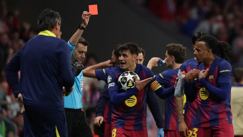 79'uncu dakikada Eric Garcia, kırmızı kart görerek Barcelona'yı 10 kişi bıraktı.