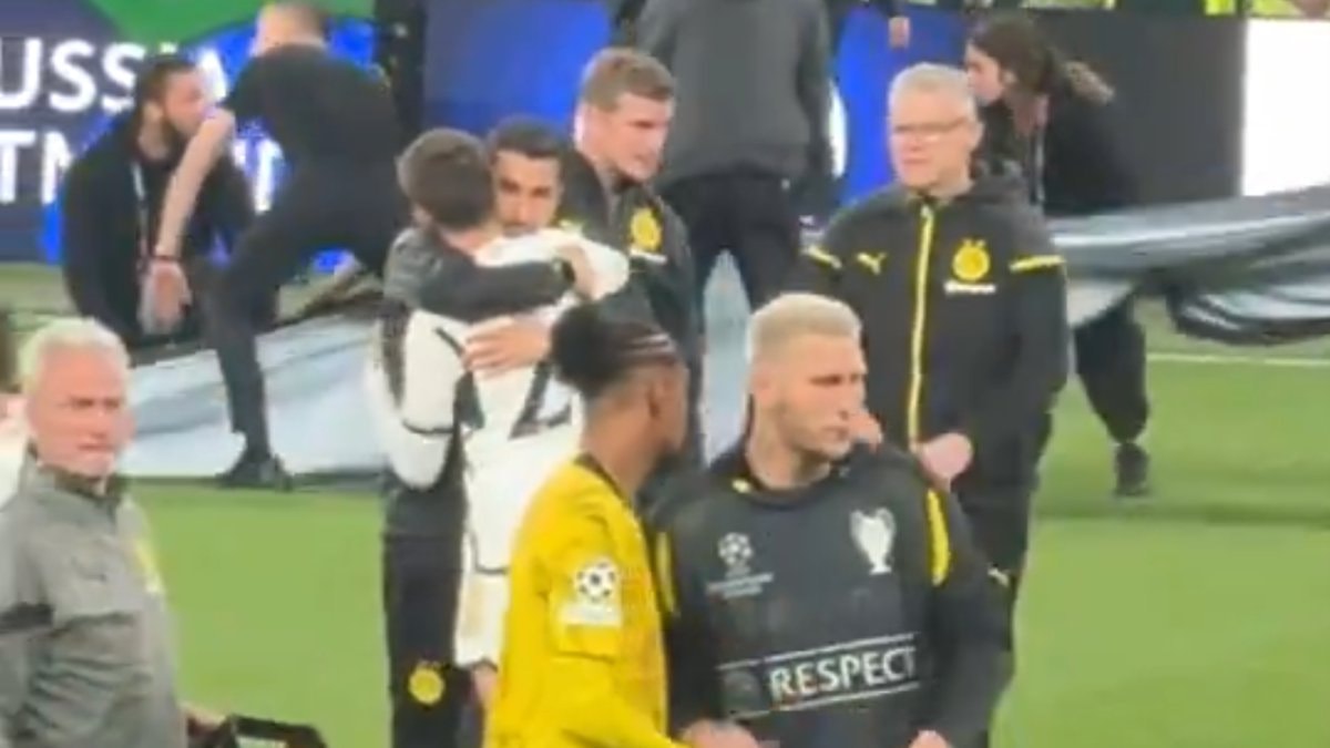 19 yaşındaki futbolcu karşılaşmanın ardından ilk olarak Borussia Dortmund'da yardımcı antrenör olan Nuri Şahin'in yanına gitti.