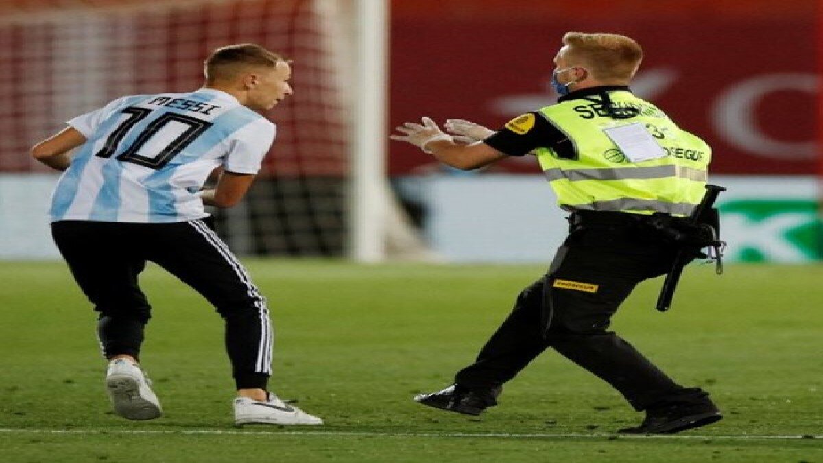 Üzerinde Barcelona'nın Arjantinli yıldızı Messi'nin 10 numaralı milli forması bulunan kişi, herkesin şaşkın bakışları arasında Jordi Alba'nın yanına koşarak oyuncu ile selfie yaptı. Güvenlik görevlileri hemen müdahale ederek sahaya giren kişiyi dışarı çıkardı.
