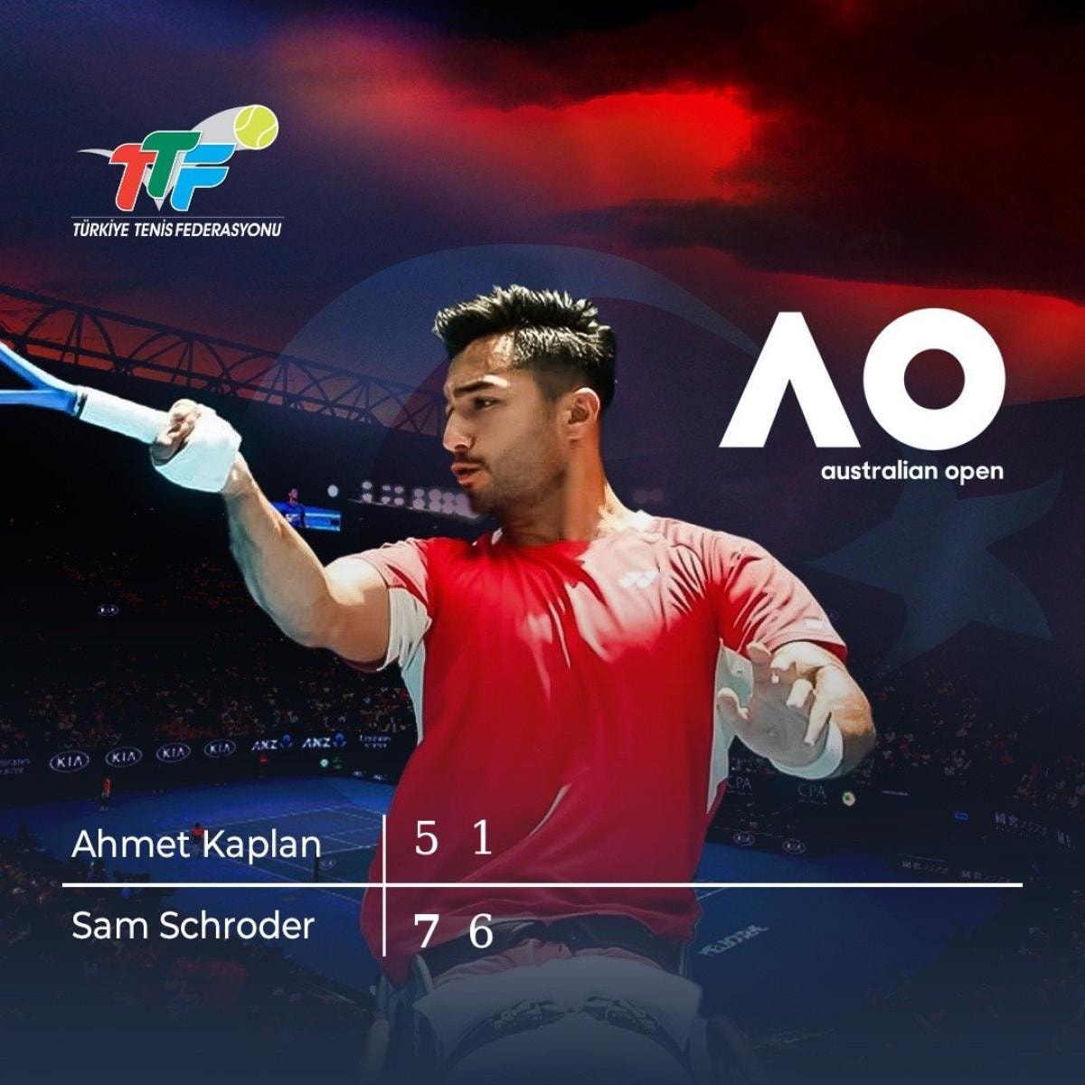 Milli sporcu Ahmet Kaplan, Melbourne kentinde düzenlenen sezonun ilk grand slam tenis turnuvası Avustralya Açık'ta quad tekerlekli sandalye yarı final maçında, Hollanda'dan 1 numaralı seribaşı Sam Schroder ile karşılaştı.