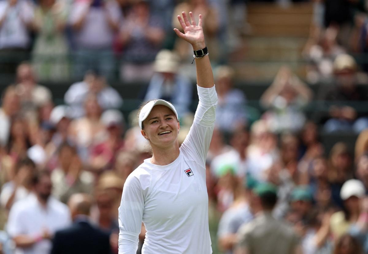 Jelena Ostapenko'yu (13) 2-0 (6-4, 7-6) mağlup ederek Wimbledon'da ilk kez yarı finale çıkan Barbora Krejcikova (31), Rybakina ile eşleşti.