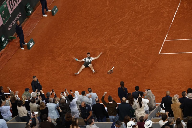 2025 Fransa Açık (Roland Garros) tek erkekler finalinde Carlos Alcaraz, 5 saat 29 dakika süren maçın ardından rakibini 3-2 mağlup ederek şampiyonluğa ulaştı.
