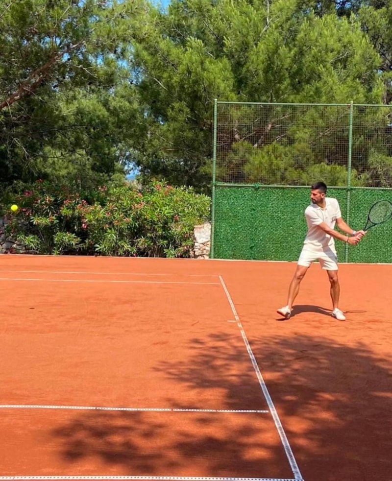 Sırp tenisçi Novak Djokovic, Bodrum'daki bir oteldeki söyleşinin ardından toprak kortta gösteri maçı yaptı.