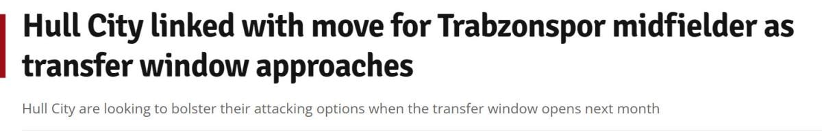 Haberde Hull City'nin Trabzonspor ile yaz transfer döneminin başlamasının ardından görüşme gerçekleştireceği belirtildi.