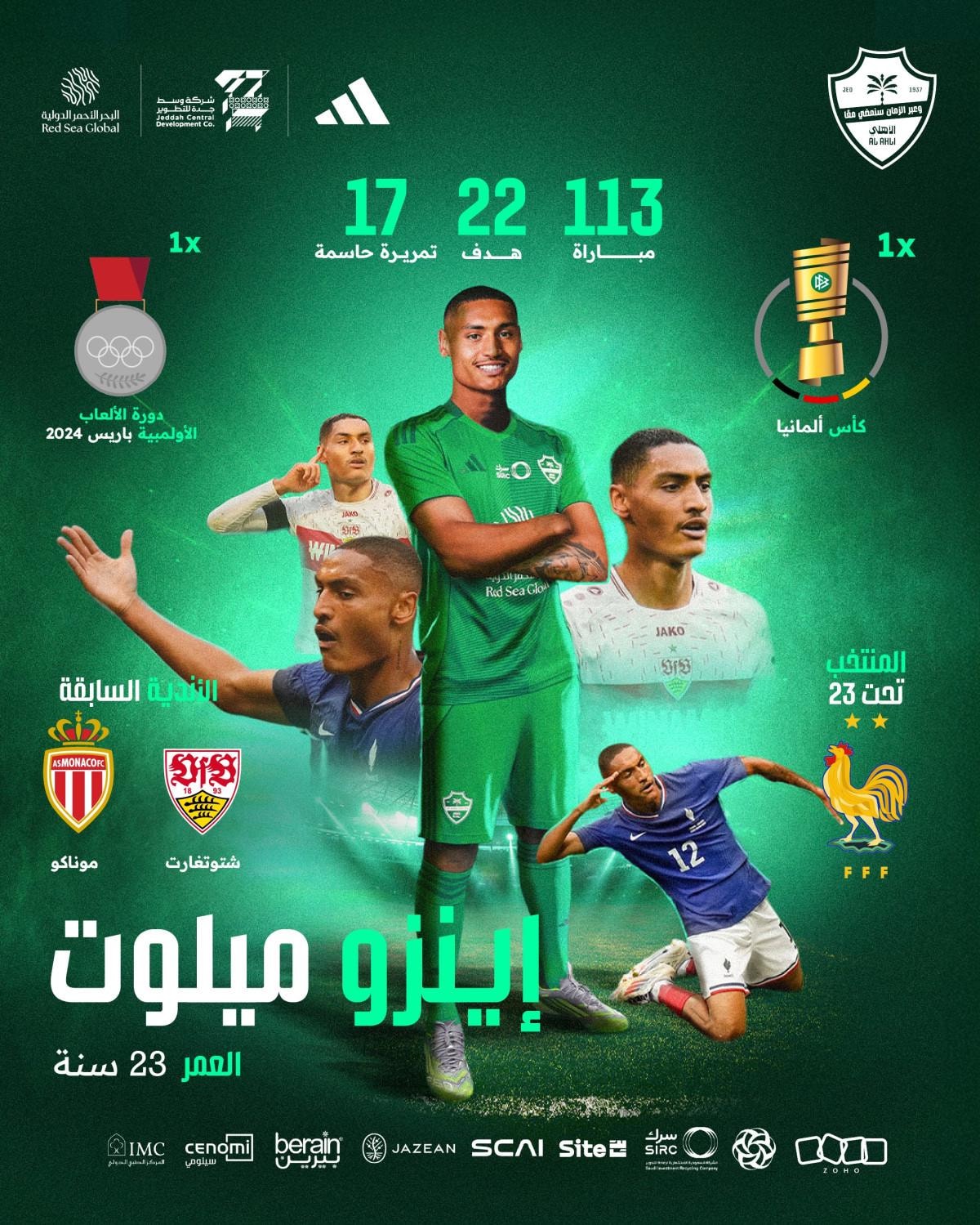Al Ahli, 2025-26 sezonu öncesinde kadrosunu kaliteli yabancı yeteneklerle güçlendirmeye devam ederken, Stuttgart'tan Fransız milli oyuncu Enzo Millot ile 3 yıllık sözleşme imzaladı.