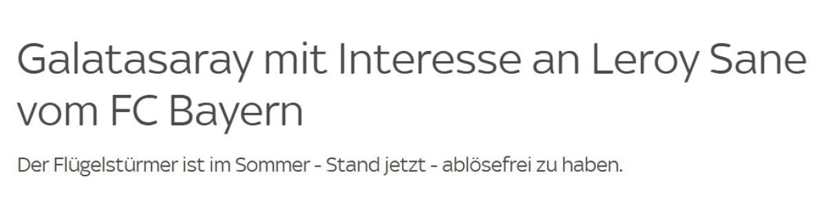 Sky Sports Almanya'dan Florian Plettenberg'in haberine göre; Leroy Sane, şu an için transfer düşünmüyor ve Bayern Münih ile sezon sonuna kadar olan hedeflerine odaklanmış durumda.