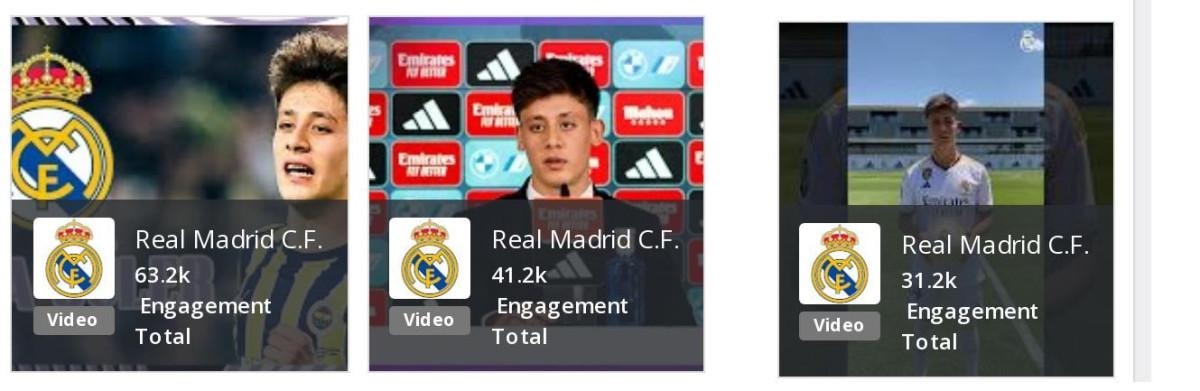 Arda Güler’in transfer sürecinin başlaması ile Real Madrid’in sosyal medya hesabı YouTube’da 7 video paylaşıldı. Paylaşılan videolar 196 bin 347 beğeni, 7 bin 423 yorum ve 2 milyon 696 bin 807 izlenme oranlarına ulaştı.