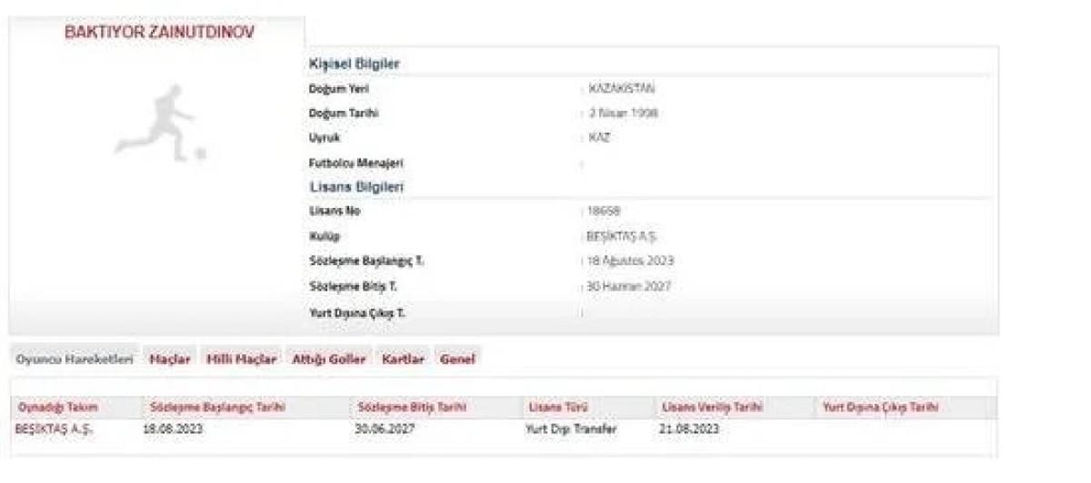 Siyah-beyazlı takım, CSKA Moskova'dan Zaynutdinov ile 4 yıllık sözleşme imzalandığını TFF'ye iletti.